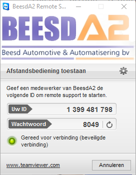 BeesdA2 maakt voor online support gebruik van TeamViewer.